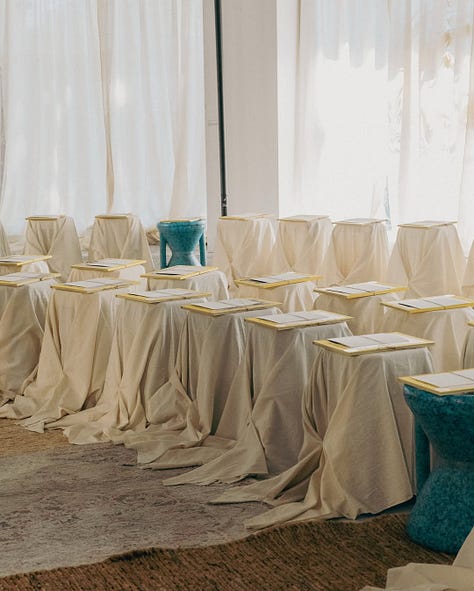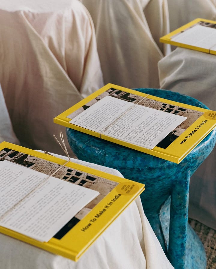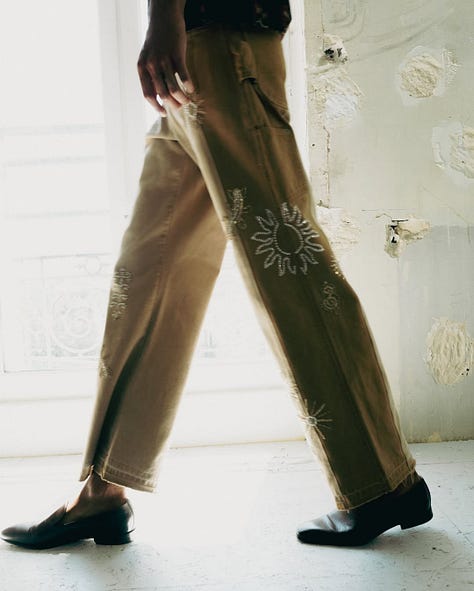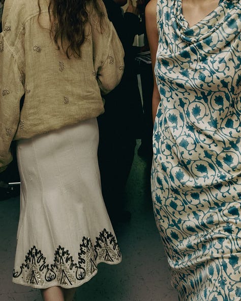 Speaking of emotion — I absolutely loved the Kartik Research show. The room was scented, the carpets were from Jaipur Rugs, and that moment when I saw Kartik backstage, surrounded by press — journalists holding out their phones, hanging onto his every word. It reminded me of those iconic backstage moments with Haider Ackermann or Jonathan Anderson. Designers as poets, critics as scribes. I've now been chronicling Kartik's work since Vogue Business and prior to that Vogue India too and this collection felt tighter, more luxe, deeply thought through. Images don't do it justice. The denims, made in collaboration with Rkive City were patchworked, embellished, made couture. As Style Not Come said - “BEAAUUtiful clothes”. You need to experience them up close. Loved the '70s inspirations. Loved the playlist - what a vibe.